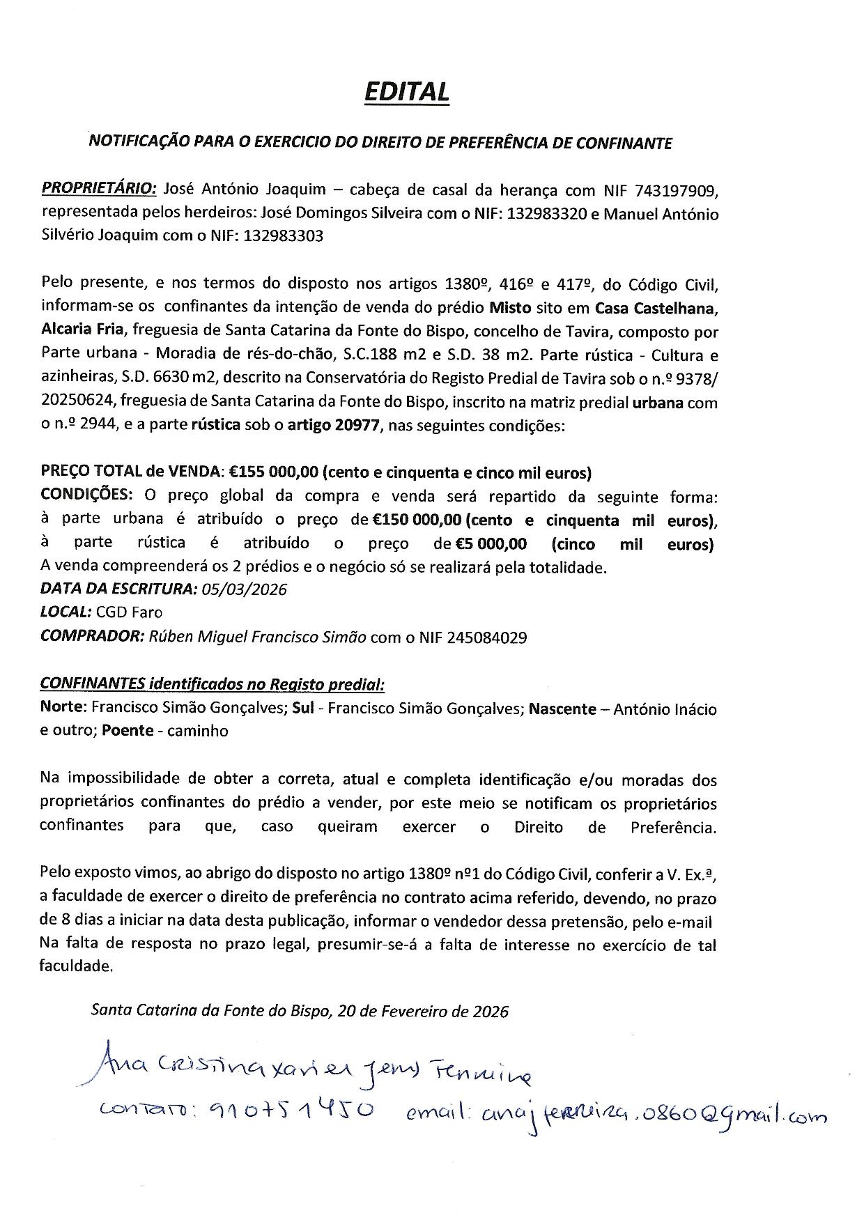 | EDITAL - Exercicio de Direito Legal de Preferência |